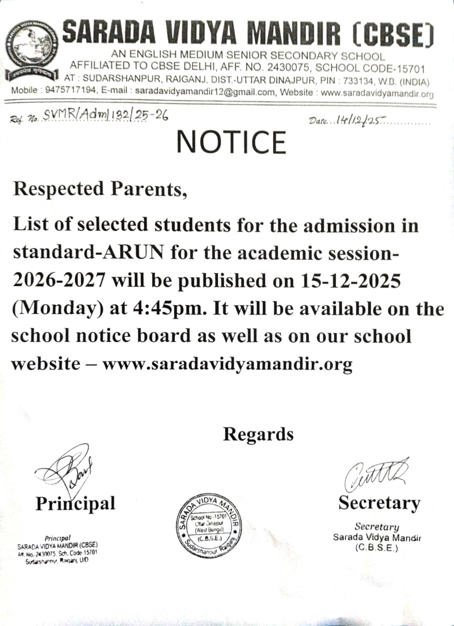Sarada Vidya Mandir(English Medium):: CBSE School in Raiganj :: Uttar Dinajpur